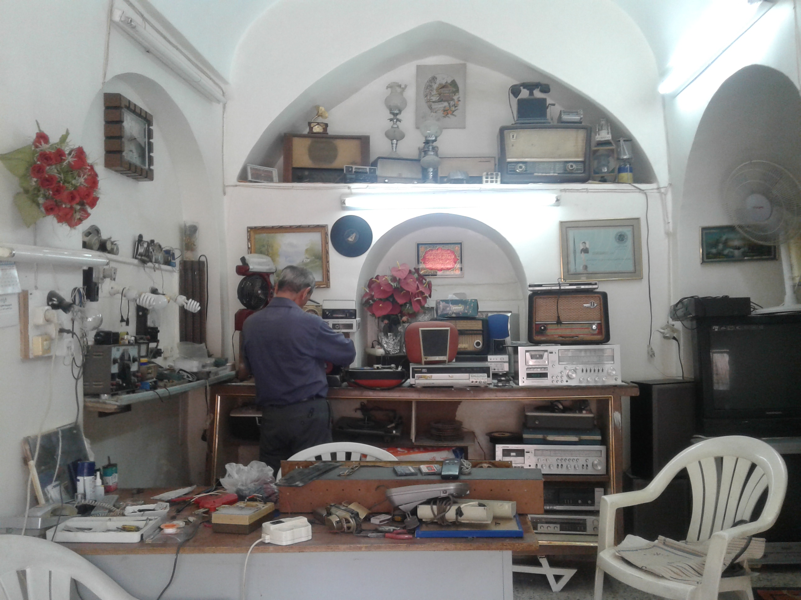 مغازه تعمیراتی ضبط و تلویویزن و رادیوهای قدیمی.. که پر بود از تلویویزن...رادیو.گراموفون های قدیمی که بیشتر تو سریالها و فیلم های قدیمی دیده بودم.
